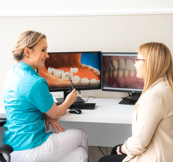 Jest to wybielanie,które w przeważającej części wykonuje sam pacjent u siebie w domu.Zadaniem stomatologa jest przygotowanie specjalnych nakładek,które pacjent będzie samodzielnie wypełniał preparatem wybielającym i zakładał na zęby.Taka metoda jest najbezpieczniejsza i zapewnia najdłużej trwające efekty.Podczas pierwszej wizyty wykonujemy dokładne zdjęcia lustrzankami w naszym studiu,dzięki czemu możemy dokładnie określić istotę problemu i razem z pacjentem opracować najlepsze rozwiązania.Następnie opracowujemy dokładny plan leczenia,który pozwala nam uzyskać najlepsze efekty.Podczas wizyty pobierany jest wycisk uzębienia pacjenta.W tym celu wykorzystujemy skaner wewnątrzustny,który znacząco podnosi komfort tego etapu leczenia,ponadto wykonany wycisk jest niezwykle dokladny,dzeki czemu zwiększamy szanse,że wykonane nakładki w pracowni protetycznej będą idealnie dopasowane.W trakcie następnej wizyty są one przymiarzane,jeśli spełniają oczekiwania,Pacjent otrzymuje je wraz ze specjalnym preparatem wybielającym,który zakłada na nakładki codziennie na noc.Efekty już sa widoczne po kilku dniach,a leczenie z reguły nie trwa dłużej niż 2 tygodnie.Niewątpliwą zaletą tego rozwiązania jest pełne bezpieczeństwo oraz fakt,że to Pacjent ma pełna kontrolę nad tym,jakie efekty chce uzyskać.